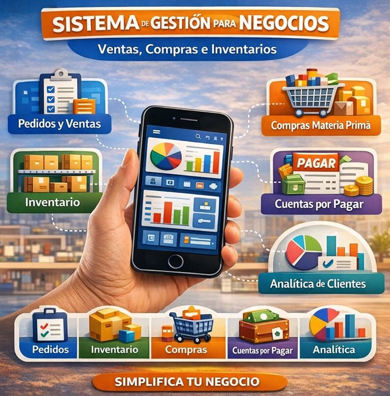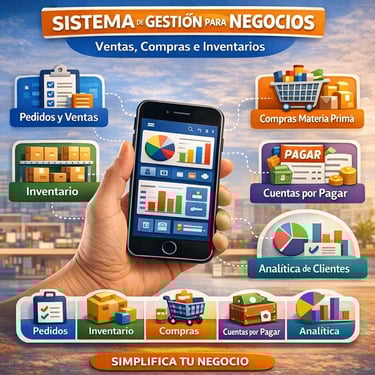 Nuestra aplicación de gestión empresarial está diseñada para negocios pequeños y medianos que necesitan controlar sus operaciones diarias sin depender de múltiples archivos de Excel o sistemas complejos. Es una solución práctica para registrar ventas internas, gestionar compras, controlar inventarios, administrar cuentas por pagar y analizar el comportamiento de los clientes, todo desde una sola plataforma.