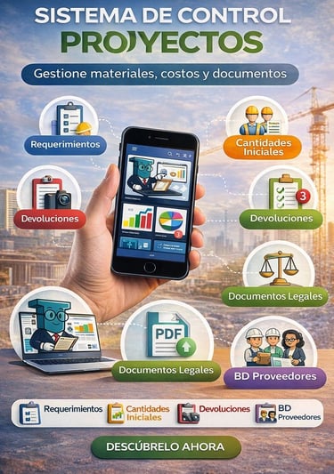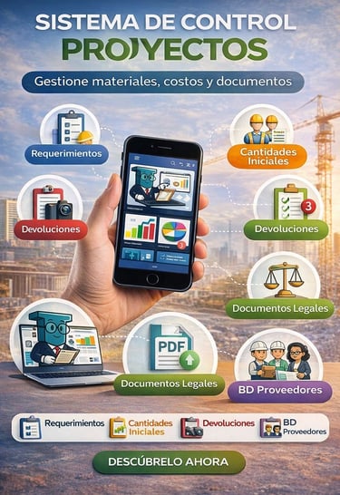 La plataforma centraliza en un solo sistema la creación de proyectos, el cálculo de cantidades iniciales, la gestión de requerimientos y pedidos, el control de inventarios de acero y materiales, la administración de proveedores, documentos legales y pólizas, y el seguimiento contable y administrativo de cada obra.